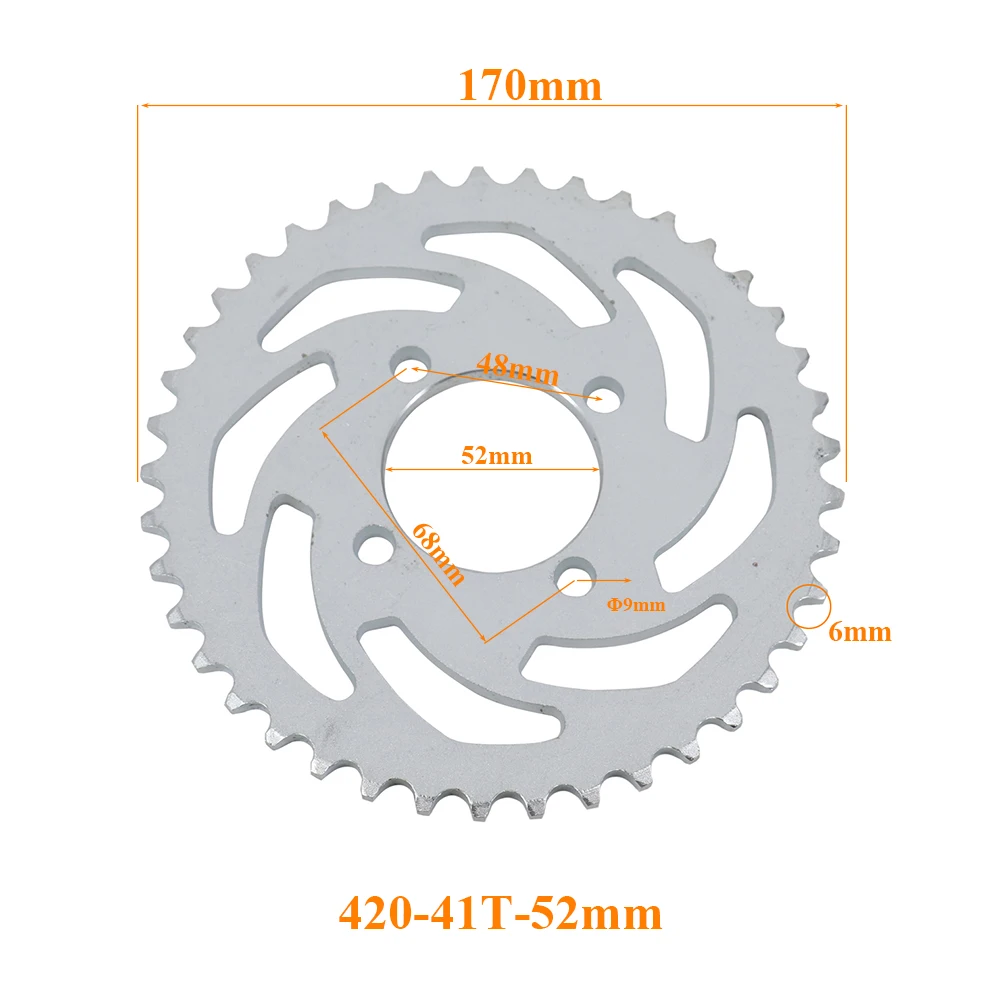 *Suitable: This sprocket has 37T/41T/42T/48T/50T/60T tooth and can only be used with 420 chains.